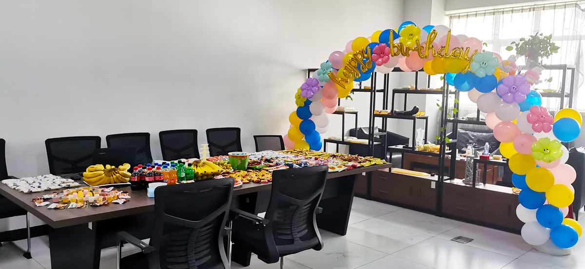 這次生日會分別在司維者科技集團總部和一疆3D打印工廠的大會議室分別舉行?;顒蝇F場布置得溫馨浪漫,氣球、彩帶、鮮花等元素點綴其中,營造出濃厚的節日氛圍。集團高層領導及當月過生日的員工們齊聚一堂,共同慶祝這個特殊的時刻。